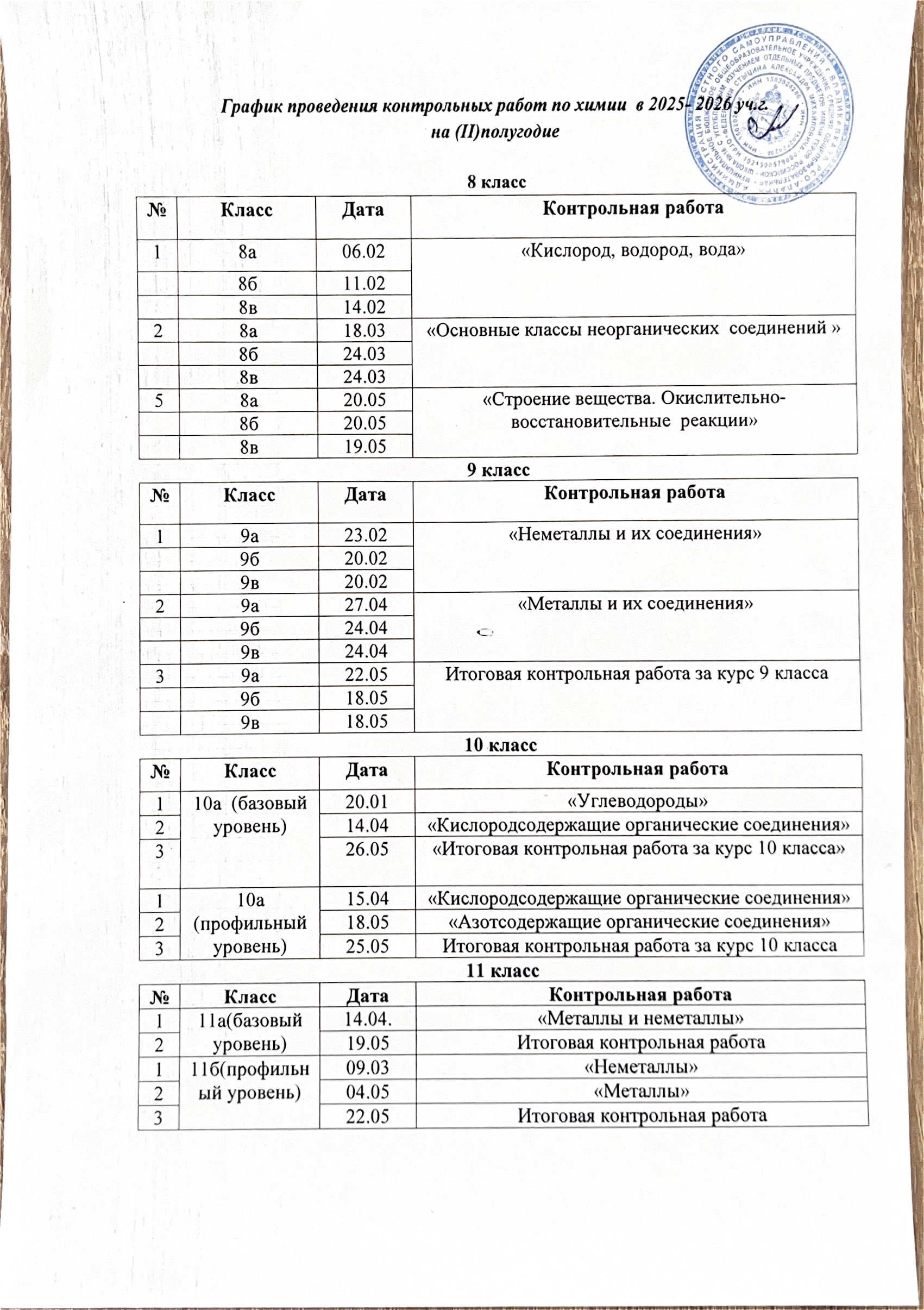 Информация о проведении контрольных работ