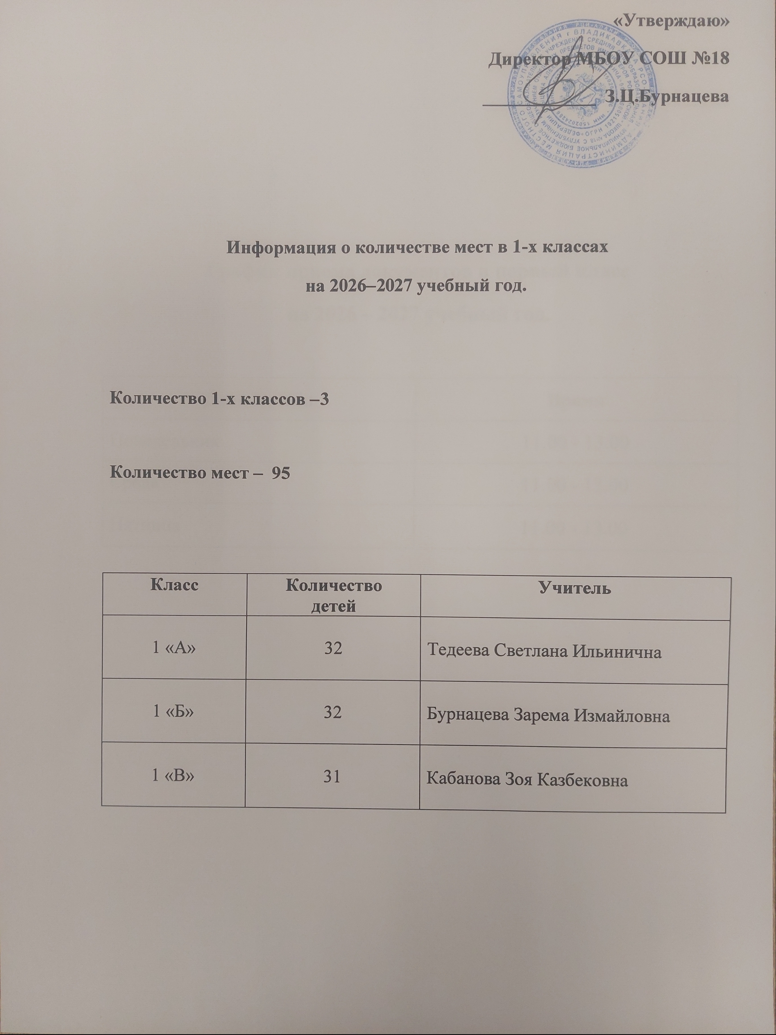 Информация о количестве мест в 1-х классах на 2026-2027 учебный год
