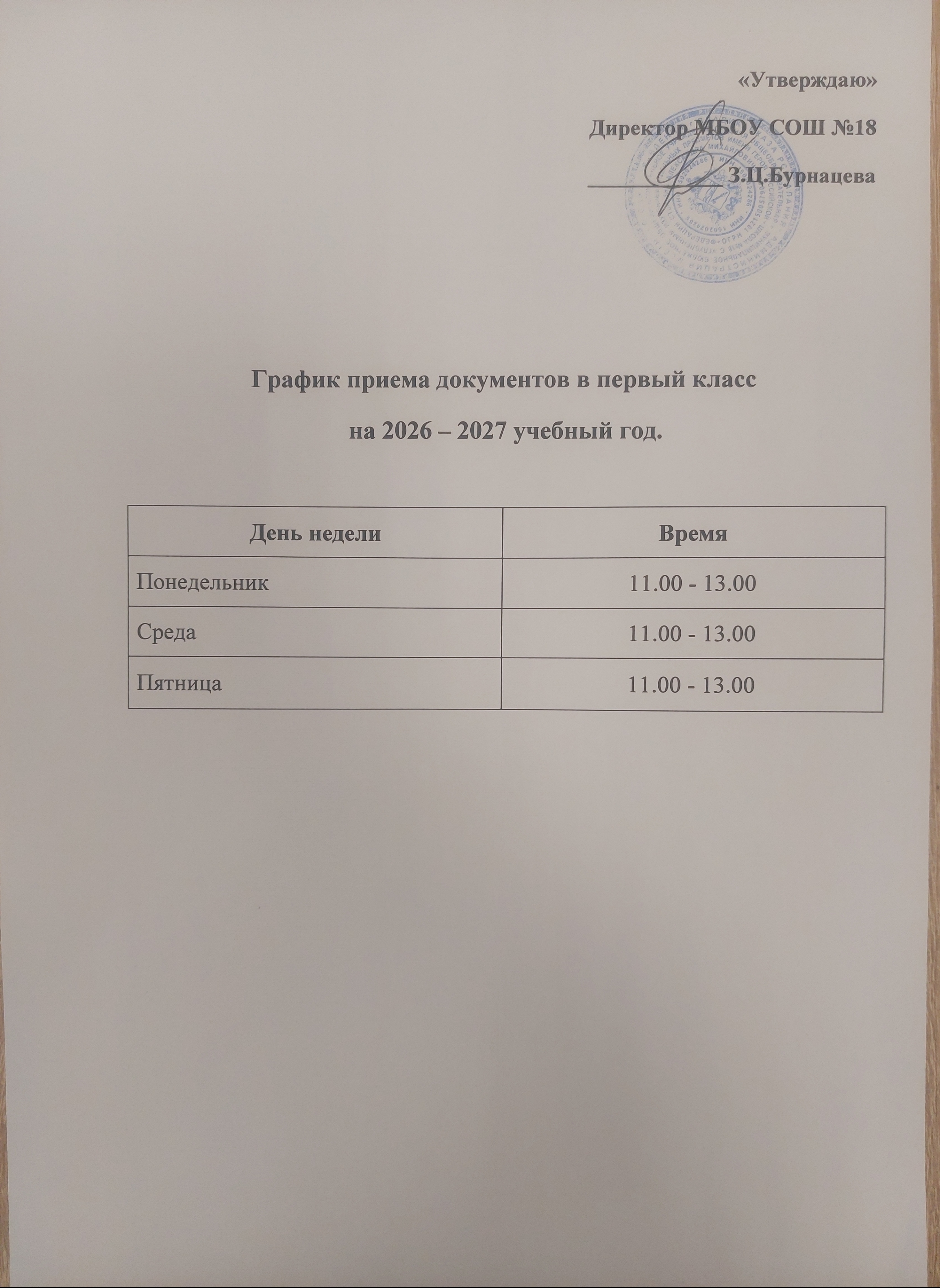Сроки приема документов для зачисления в МБОУ СОШ №18